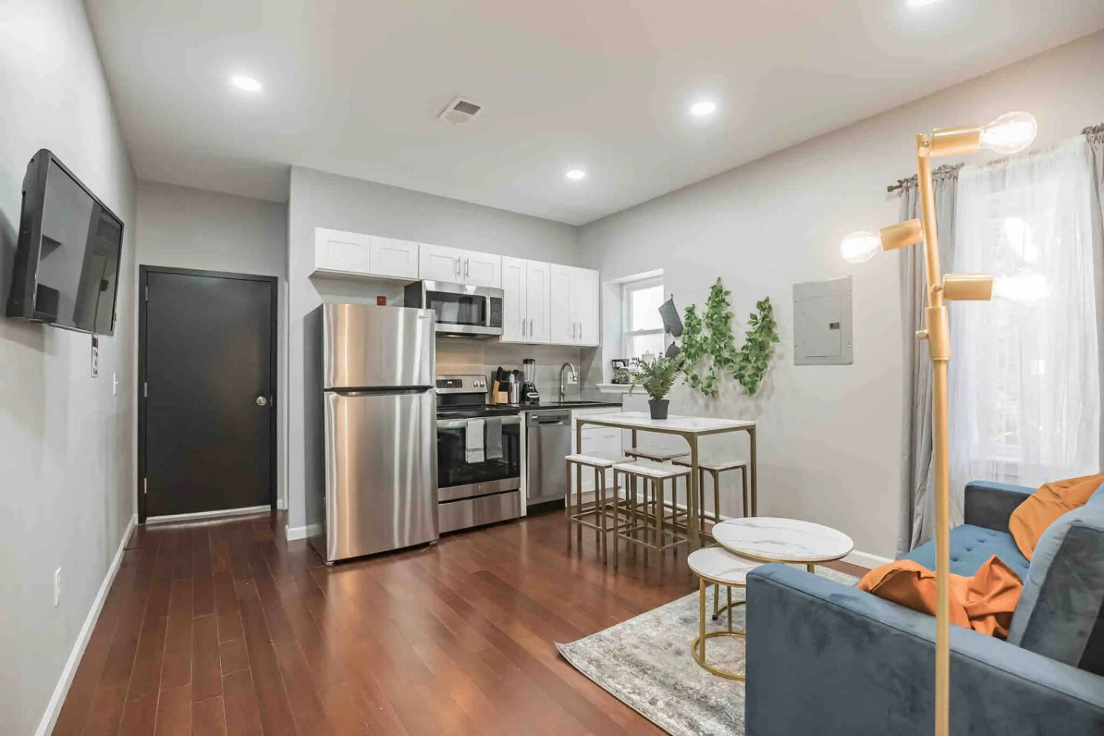 Stay in this cozy, modern 2BR with one of the BEST locations! This gem puts you right in the heart of Center City. Just steps from the hottest shops, award-winning restaurants, and buzzing nightlife. With 3 plush queen beds, it comfortably sleeps up to 8 guests, making it perfect for groups and geta...