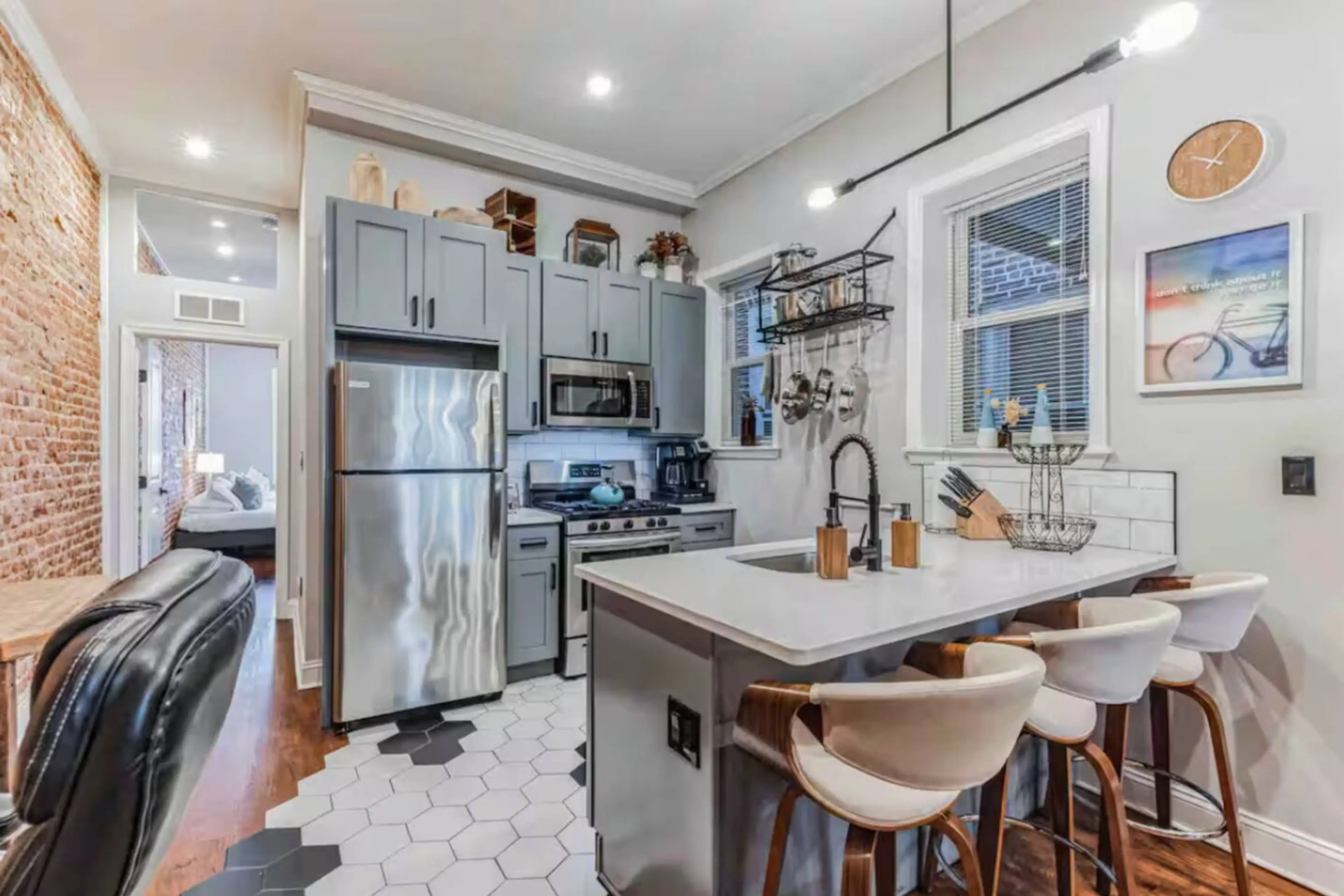 Create amazing memories at this super unique and family-friendly 3/2 apartment. This unit is HUGE! Stunning decor throughout. Impeccably designed and renovated to perfection. Enjoy the outdoors on its furnished private terrace. Unit comes equipped with its own gym equipment and TV room! Wine refrige...